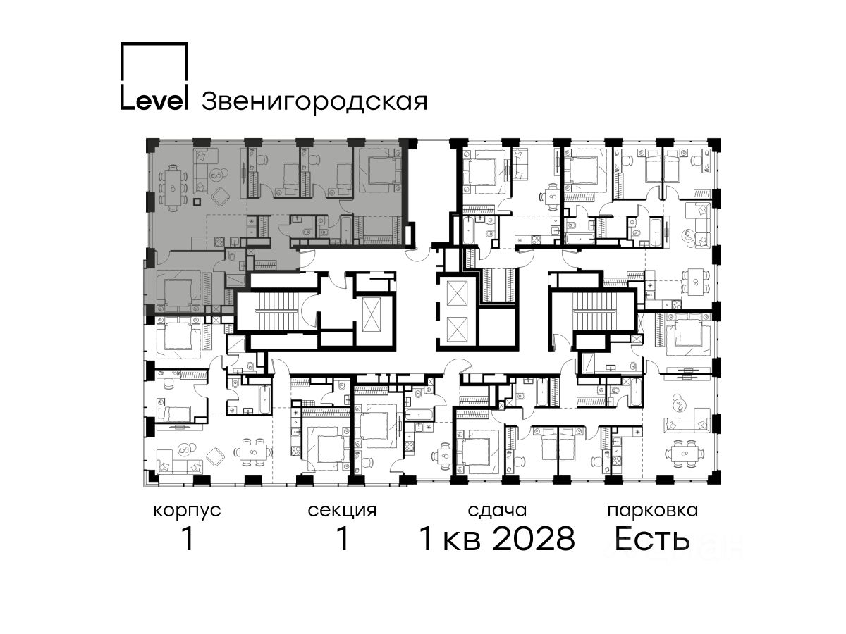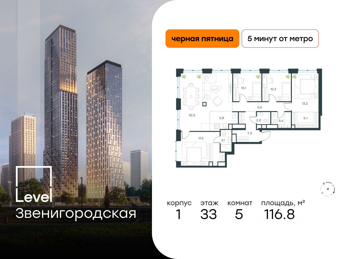 В престижном районе Хорошёво-Мнёвники продаётся многокомнатная квартира площадью 116.80 кв.м white box. Квартира расположена на 33 этаже 48 этажного корпуса Корпус 1 в жилом комплексе класса комфорт+ Level Звенигородская (компания Level Group/Левел групп).