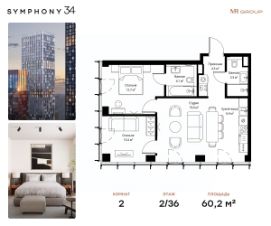 ЖК Симфония 34 - концептуально новый жилой комплекс премиум-класса с подземной парковкой, состоит из четырех башен высотой 36 - 54 этажа.
