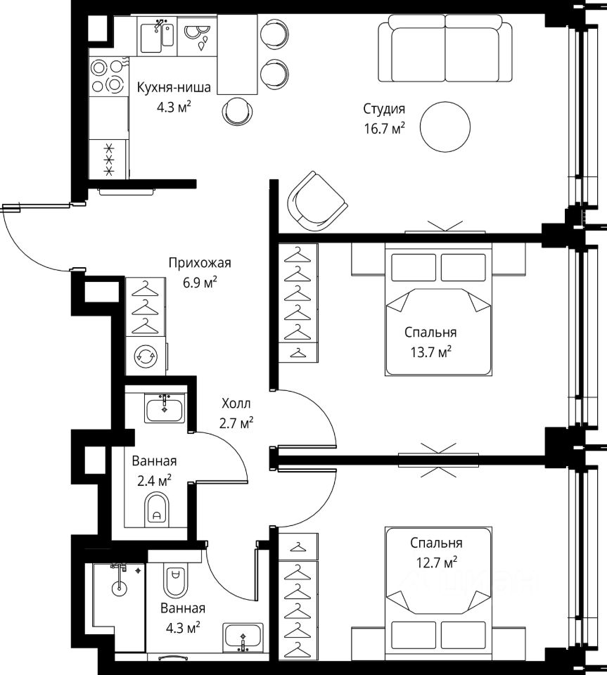 Квартиры сдаются с базовой (предчистовой) отделкой MR BASE или дизайнерской чистовой отделкой MR READY.