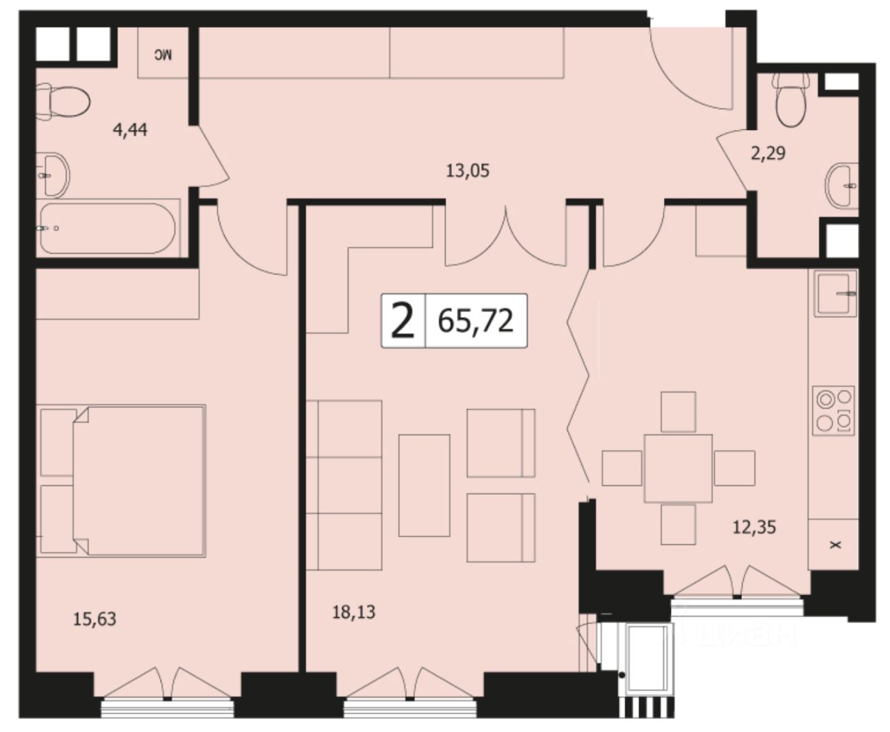 Продается двушка в бетоне в современном ЖК бизнес-класса Twice (Твайс)!