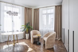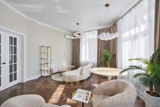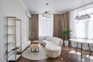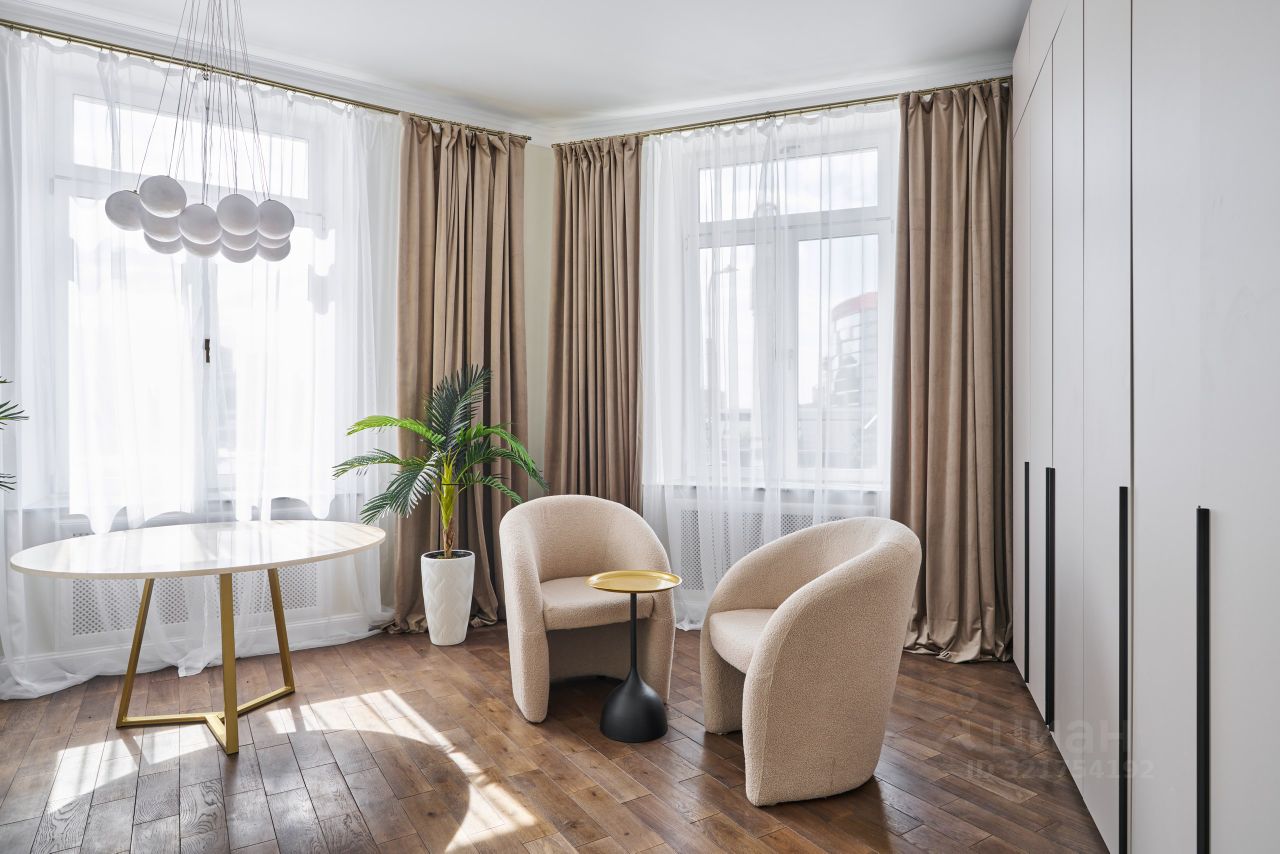 В квартире полгода назад выполнен качественный ремонт по индивидуальному дизайн-проекту. Дом построен в 1953 по специальному проекту для управления делами КЦ ВКП (б) в стиле поздней неоклассики, дом в форме колодца переменной этажности. В доме проведен капительный ремонт фасада, цоколя, крыши и ряда инженерных систем.