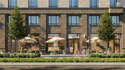 Новый проект на 1-м Иртышском проезде - это два квартала переменной высотности, детский сад и коммерческие павильоны. Разноэтажные секции высотой от 28 до 100 метров объединит стилобат. Фасады домов облицованы керамогранитом с фактурой камня. Это отсылка к работе зодчих XVIII-XIX веков. Кропотливо проработанная архитектура делает здания элегантными и нескучными.