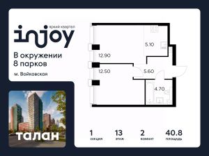 Прямая продажа от застройщика. В жилом квартале, расположенном в Войковском районе Москвы, продаётся 2-комнатная квартира площадью 40.8 кв.м без отделки. Квартира расположена на 13 этаже 35-этажного дома, корпус 1, в жилом квартале бизнес-класса INJOY.