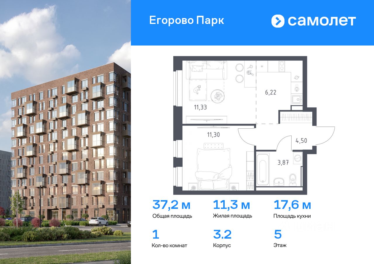 Строим кварталы для жизни с заботой о будущем. Предлагается 1-комнатная квартира комфорт-класса 37,22 кв.м в корпусе 3.2 на 5 этаже, в ЖК "Егорово Парк"