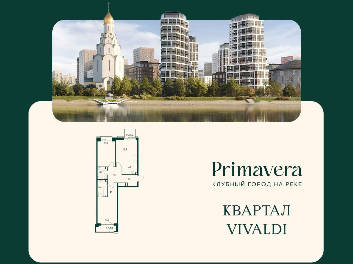 Клубный город на реке "Примавера" — это современный жилой комплекс премиум-класса, расположенный на первой береговой линии Москвы-реки в экологически чистом районе Покровское-Стрешнево. Под панорамными окнами квартир находится собственный экопарк с продуманной сетью прогулочных дорожек и современными детскими и спортивными площадками. За парком расположена набережная с собственным пляжем и зонами для отдыха. Клубный город на реке "Примавера" предлагает широкий выбор планировок для различных жизненных сценариев: от просторных однокомнатных квартир до пентхаусов и жилых помещений с террасами и патио. Выберите из 120 вариантов эргономичных планировок стандартного и евроформата. Из каждой квартиры открываются красивые виды на реку с углом обзора в 270 градусов. Дизайнерские лобби предлагают панорамный обзор на благоустроенный двор. Высокие потолки в 6 метров и качественная отделка создают атмосферу, схожую с пятизвездочными отелями. В "Примавера" есть всё необходимое для комфортной жизни в мегаполисе: • Образование для детей в шаговой доступности: 4 школы, 8 детских садов и развивающие центры с кружками и секциями. • Удобства на расстоянии приятной прогулки: супермаркеты, кафе, рестораны с верандами, салоны красоты, аптеки и многофункциональный центр для шоппинга и развлечений. • Умный дом: автоматизированное бесконтактное управление основными системами доступа и безопасности через мобильное приложение. Клубный город на реке "Примавера" выгодно сочетает комфорт городской жизни с близостью к природе. Живите в месте, где все создано для вашего удобства!