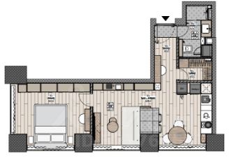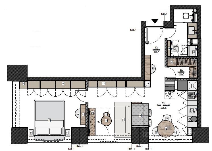 Функциональная, до мелочей продуманная планировка с большим количеством мест хранения. Качественная и современная мебель и техника (в том числе стирально-сушильный комплект).
