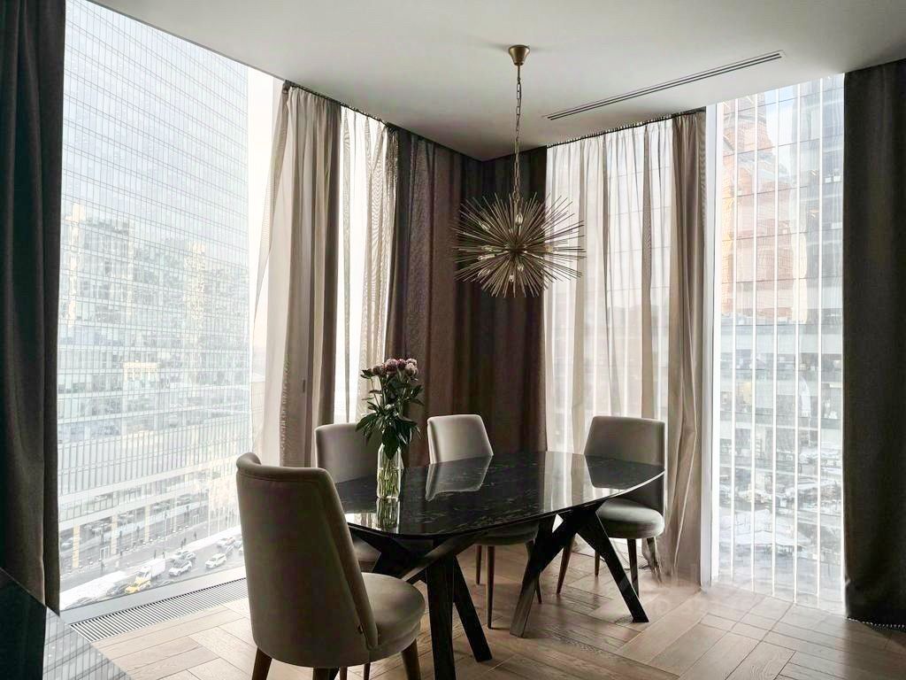 Панорамное остекление открывает захватывающие виды на столицу, наполняя пространство естественным светом и энергией.