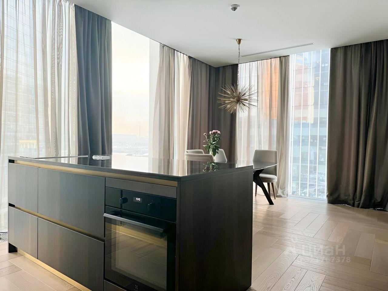 В продажу предлагается шикарный апартамент с панорамными видами и дизайнерским ремонтом в престижной башне Нева.