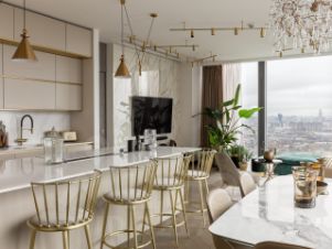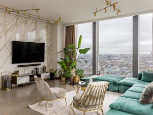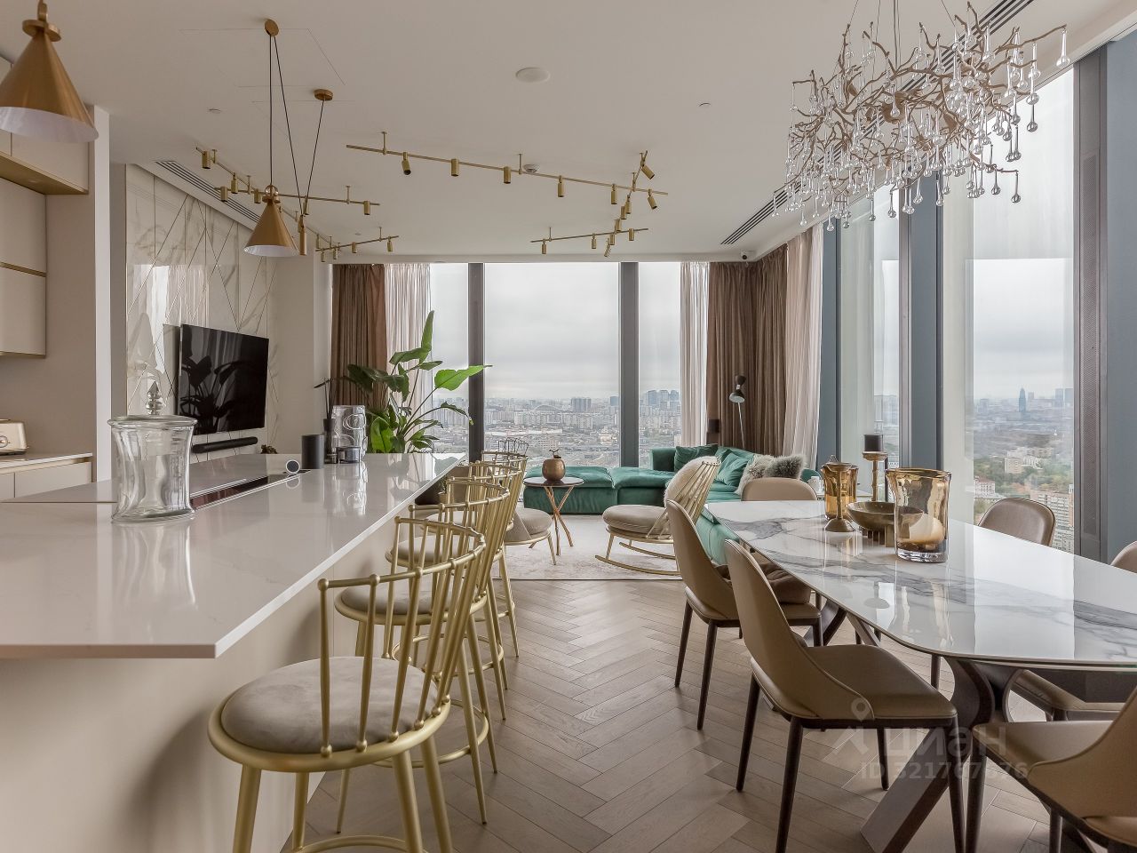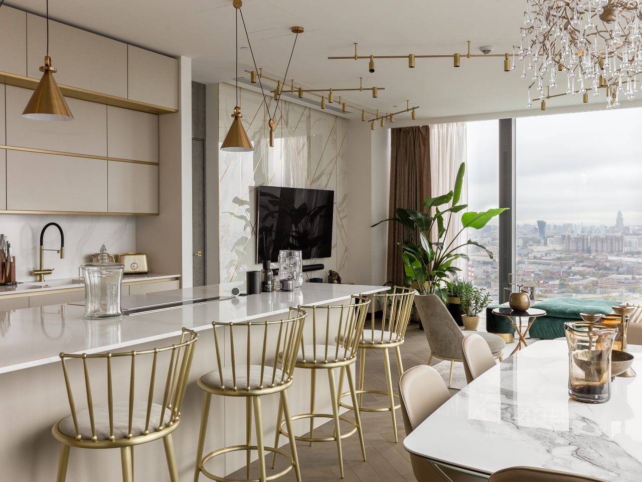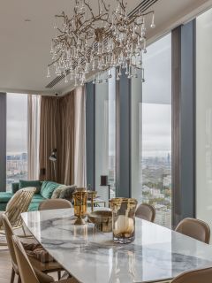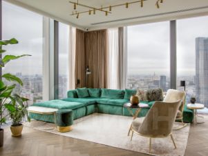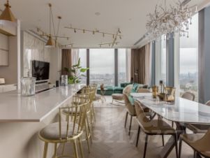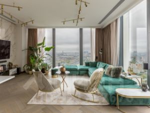 Панорамное остекление открывает захватывающие виды на столицу, наполняя пространство естественным светом и энергией.