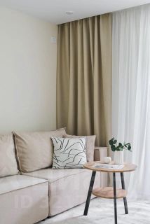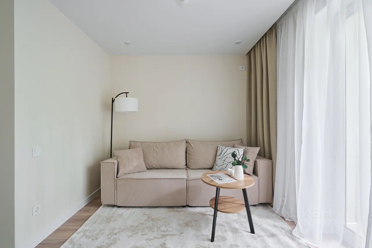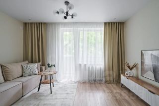 Светлая гостиная с раскладывающимся диваном и ТВ зоной (из гостиной выход на балкон)