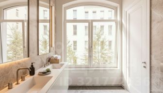 Широкоформатные арочные окна ориентированы на две стороны света, открываются виды на благоустроенную территорию комплекса.
