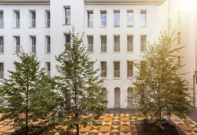 Главное о доме. Cloud Nine — ансамбль клубных домов на Золотой Миле с камерным составом резиденций. Архитектура сочетает восстановленные особняки и современные объёмы в светлом камне и стекле; французские окна и террасы выводят на зелень внутреннего сада. В лобби — натуральный камень, латунные детали, мягкий свет, стойка ресепшн и небольшие зоны для встреч. Во дворе сделали тихий сад без машин с вечерней подсветкой. На верхних уровнях встречаются пентхаусы с террасами. На первых этажах — повседневные сервисы; паркинг связывается с корпусами лифтами.