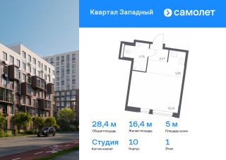 Предлагается квартира студия комфорт-класса 28,41 кв.м в корпусе 10 на 1 этаже, в ЖК "Квартал Западный"