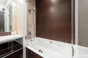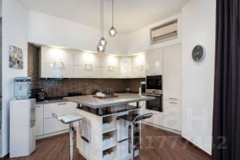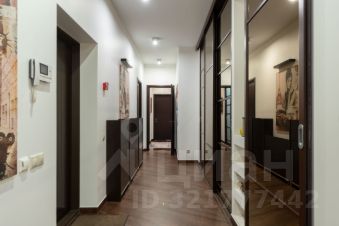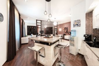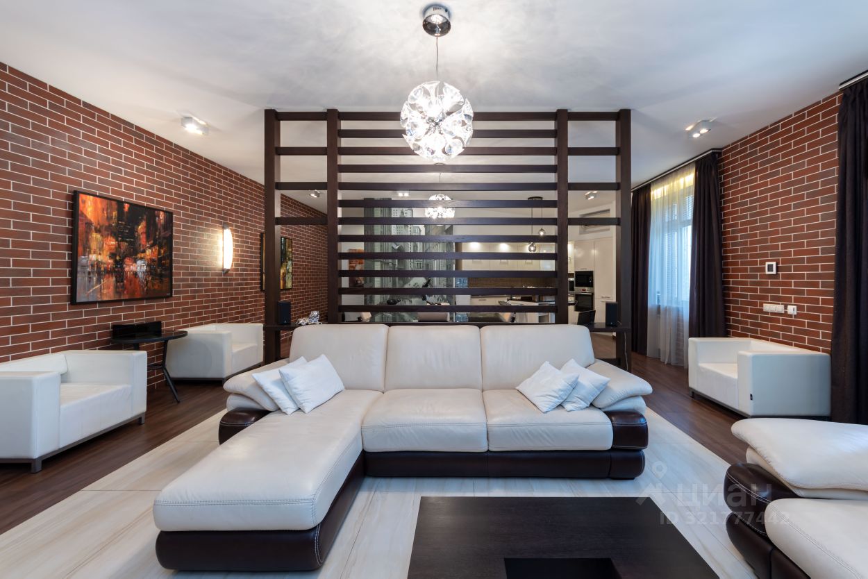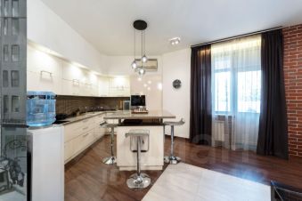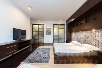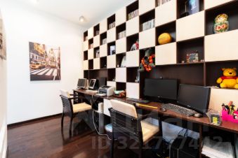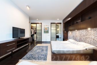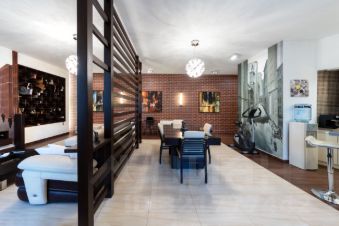 Потолки - h=3,30 м. Кухня гостиная - 59,4 кв.м. (со всей необходимой техникой фирмы Gorenje). Обеденная зона с большим столом на 6 персон отделена от зоны отдыха лёгкой перегородкой. Там же домашний кинотеатр, бар и винный холодильник. Просторная прихожая с большим гардеробом и постирочной комнатой. Два санузла, оба оборудованны ванной. Один в корридоре, напротив детской комнаты 20,4 кв.м, второй в изолированной спальне 22,4 кв.м. При отделке квартиры использовалась декоративная плитка, нанесены авторские художественные рисунки в виде картин. По всей квартире выполнена многофункциональная подсветка с различными режимами освещения. В каждой комнате установлен кондиционер. Пол с подогревом и системой управления с настройкой разных режимов работы. По квартире размещены встроенные колонки с центральной системой управления. Фоном можно включать музыку по всей квартире.