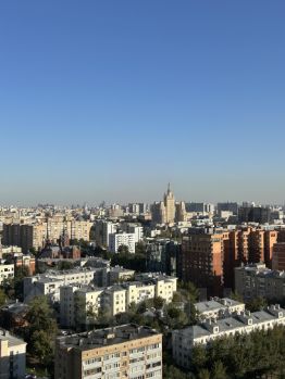 Квартира угловая, с 7-ю панорамными окнами, и благодаря этому вид почти на весь центр Москвы, на деловой центр Москва-Сити", на высотку на Кудринской площади и т.д.