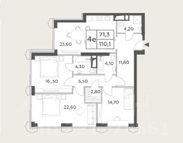 Видовая квартира в новом ЖК Will Towers, по адресу: улица Генерала Дорохова дом 49, башня INSPIRATION, 19-й этаж, евро 4-х комнатная, 111,8 кв.м.