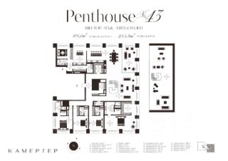 Пентхаус класса deluxe в новом комплексе особняков "Камергер" в 300 метрах от Кремля. В пентхаусе продуманное планировочное решение: просторная хозяйская мастер-спальня со своей гардеробной и ванной комнатой, 4 спальни со своими ванными комнатами, зона для приема гостей с просторной гостиной, кухней-столовой, изолированная кухня, терраса площадью 33 кв. м на уровне апартамента и хозяйственные помещения. Особая привилегия пентхауса самые высокие панорамные окна с видом на 4 стороны света и собственная терраса площадью 203 кв. м на кровле особняка. Отделка осуществляется с применением натуральных материалов: мрамора и ценных пород дерева. Подобраны элегантные детали интерьера и мягкая мебель. Высокие потолки 4,1 метра.