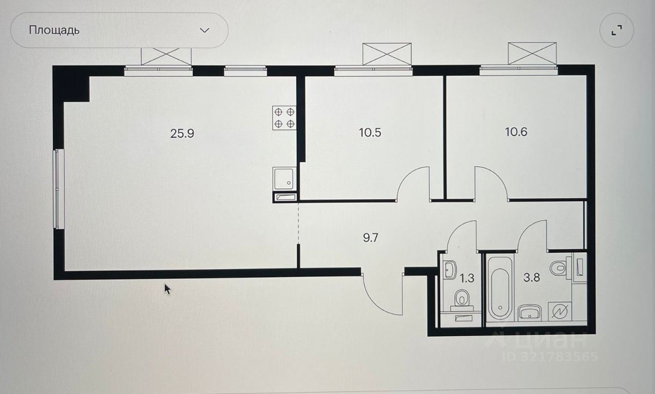 Продаётся современная 3-комнатная квартира площадью 61 м² на 18 этаже.