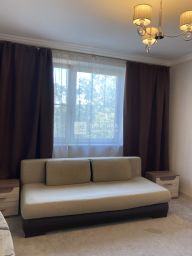 - Прекрасные параметры: средний этаж, 2 изолированные комнаты (мебель остается), большая прихожая, кухня квадратной формы (встроенная кухня с техникой), просторный санузел (есть даже биде).
