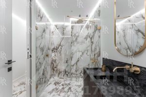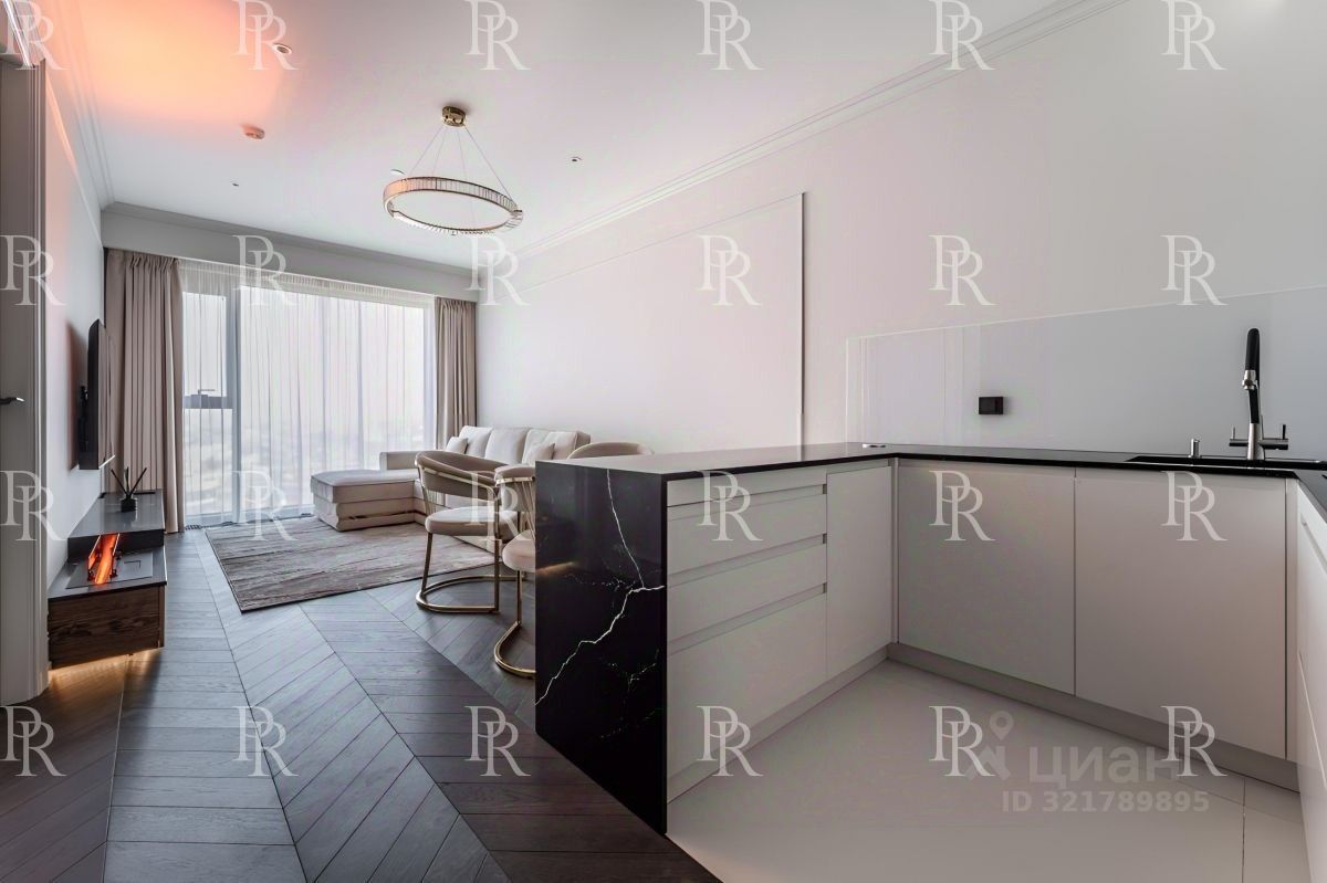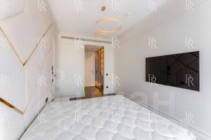 Выполнен дизайнерский ремонт в современном стиле. Санузлы оснащены премиальной итальянской сантехникой, на полу дубовый паркет. Подогрев пола отдельных зон. Вся мебель была изготовлена по индивидуальному заказу из премиальных натуральных материалов. Кухонный гарнитур выполнен из натурального шпона, а столешница сделана из кварцевого камня. Диван и кровать произведены компанией Estetica, а итальянские шторы и тюль оснащены системой электроуправления, позволяющей управлять ими с пульта.