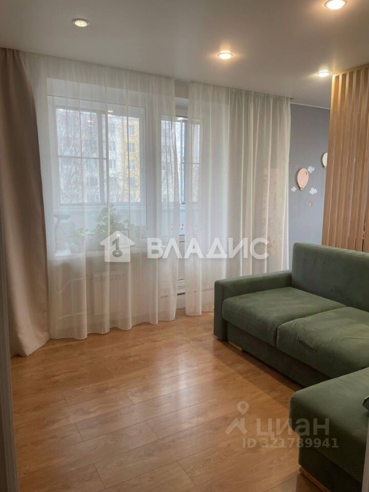 Квартира находится на 7-м этаже 9-этажного панельного дома 1967 года постройки. Общая площадь — 48,7 кв. м, жилая — 31,9 кв. м, кухня — 6 кв. м. Комнаты изолированные, их площадь — 13 кв. м и 18,9 кв. м. Высота потолков — 2,64 м. В квартире сделан евроремонт, есть лоджия, один совмещённый санузел. Окна выходят на улицу.
