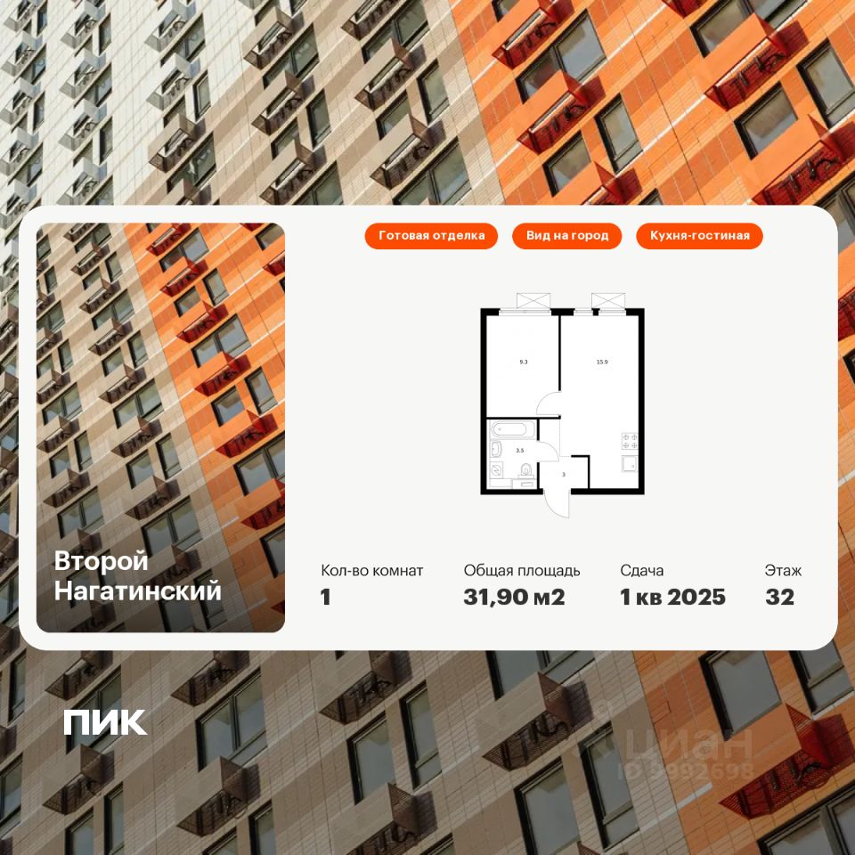 Продаётся 1-комн. квартира площадью 31,9 кв.м на 32 этаже 33 этажного дома (Корпус 5, Секция 1) проекта ПИК Второй Нагатинский. Светлый просторный подъезд на уровне земли, функциональная планировка, большие окна, c отделкой.