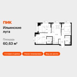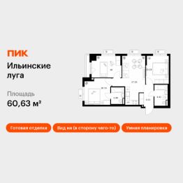 Продаётся 3-комн. квартира площадью 60,63 кв.м на 8 этаже 9 этажного дома (Корпус 4.1, Секция 5) проекта ПИК Ильинские луга. Светлый просторный подъезд на уровне земли, функциональная планировка, большие окна, c отделкой.