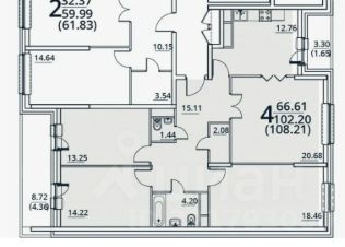 Просторная 4х комнатная квартира, 112 м2 с учетом лоджий.