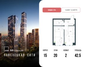 В Даниловском районе столицы (ЮАО) продаётся 2-комнатная квартира площадью 42.50 кв.м без отделки. Квартира расположена на 20 этаже -этажного корпуса 'Горизонт' в жилом комплексе бизнес-класса Павелецкая Сити. Высота потолков 3.00м.