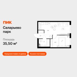 Продаётся 1-комн. квартира площадью 35,5 кв.м на 2 этаже 14 этажного дома (Корпус 57.5, Секция 5) проекта ПИК Саларьево парк. Светлый просторный подъезд на уровне земли, функциональная планировка, большие окна, предчистовая отделка.