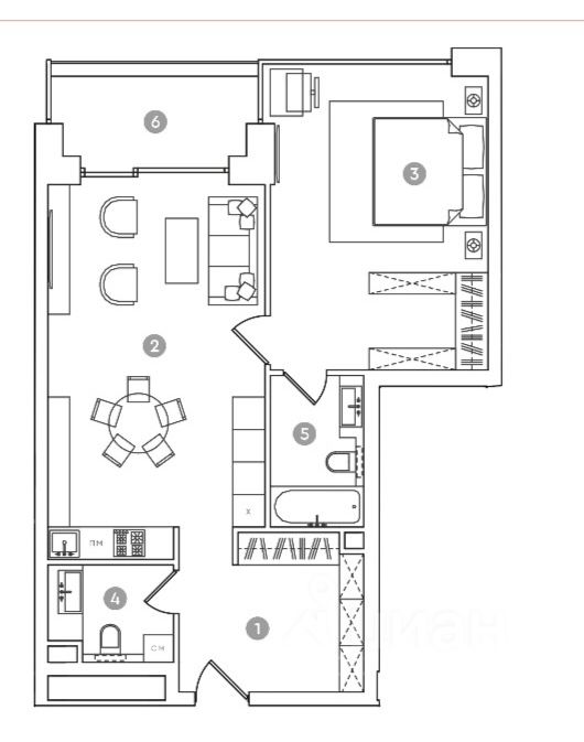 Отдельное помещение при входе, идеальное под гардеробную или для шкафов.