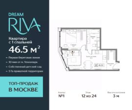 Продаётся Квартира с 1 спальней квартира на 12 этаже 24-этажного дома (1 корпус).