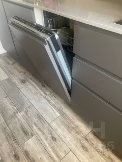 Остается встроенный кухонный гарнитур с варочной панелью и посудомоечной машиной BOSCH, духовой шкаф HANSA, вытяжка, кондиционер TOSHIBA.