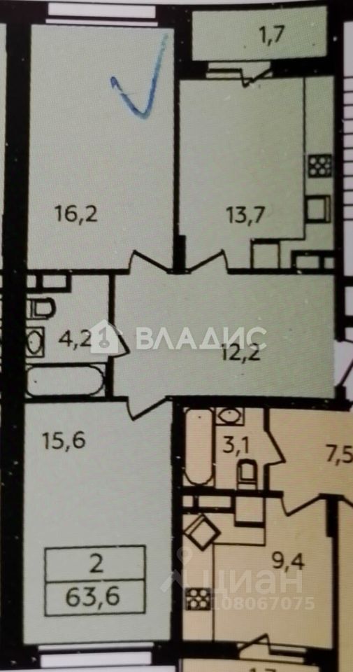 Общая площадь квартиры составляет 64.2 кв. м, а жилая площадь — 45 кв. м. Просторные изолированные комнаты обеспечат вам необходимую приватность, а кухня площадью 13.6 кв. м станет отличным местом для семейных ужинов. В квартире проводился косметический ремонт, поэтому у вас будет возможность добавить штрихи по своему желанию, не тратя много времени на капитальный ремонт.