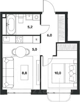 Продается 2е-к.кв. в ЖК ALIA общей площадью 35 кв.м., кухня 13,8 кв.м.