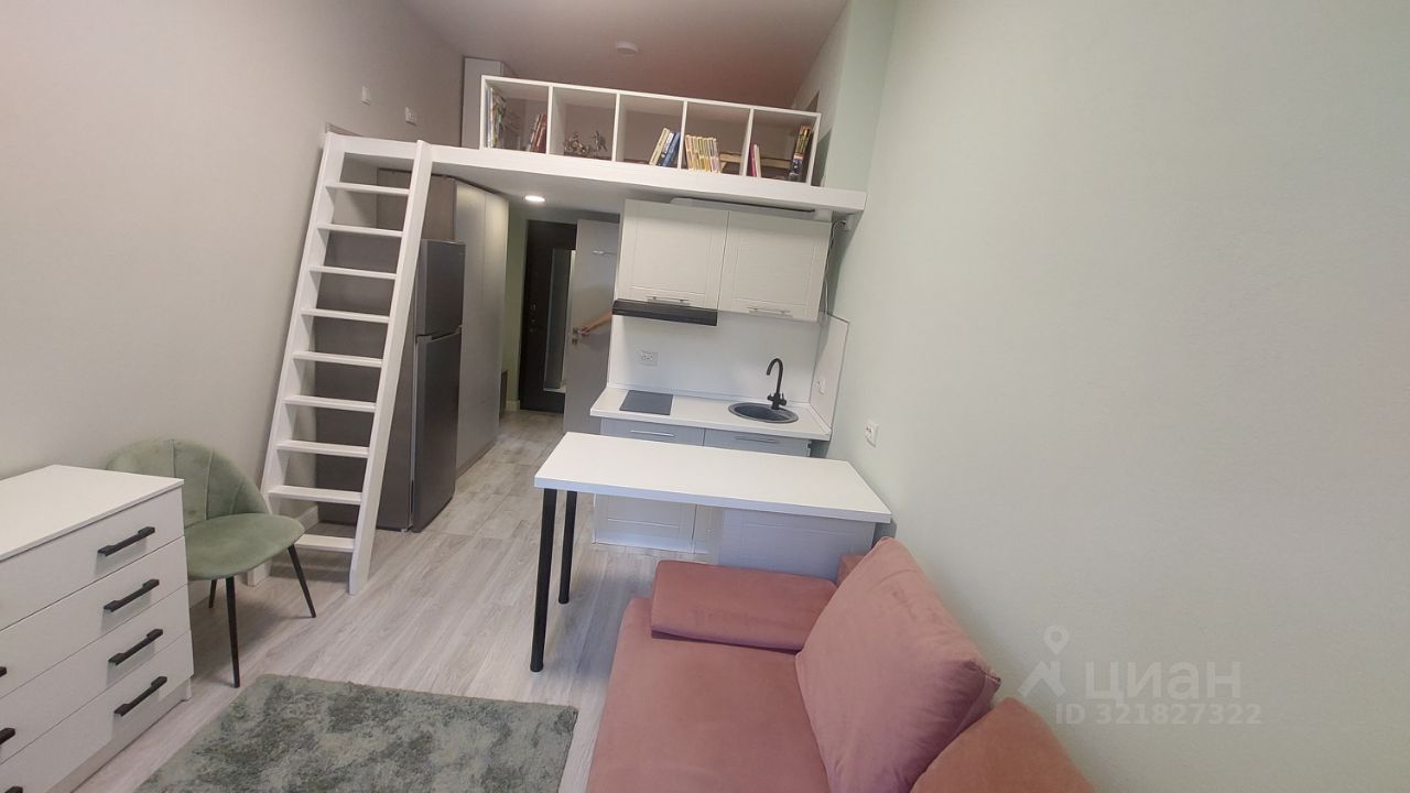 В апартаментах выполнен дизайнерский ремонт, создающий атмосферу комфорта и уюта. Пространство продумано до мелочей: благодаря высокому потолку и грамотной планировке, в студии ощущается простор. Санузел совмещённый, выполнен в современном стиле. Окна выходят во двор, что обеспечивает тишину и спокойствие.