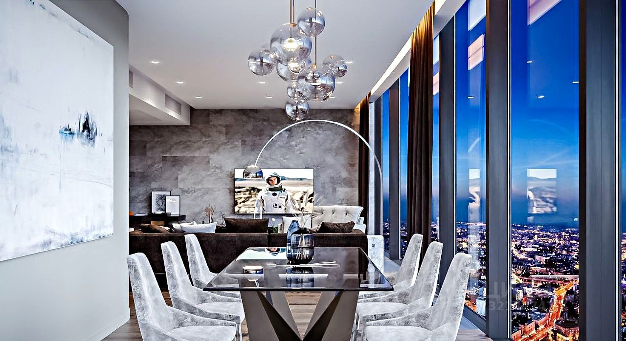 • Уникальный дизайнерский ремонт и потрясающие панорамные виды на Москву с 75 этажа.