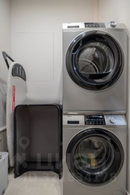 В коридоре встроенный шкаф для сезонных вещей + постирочная 2.3м² ( стиральная машина и сушильная машина, фирма Haier).