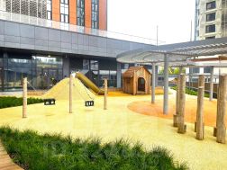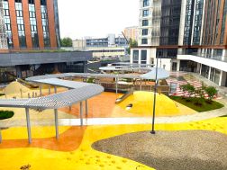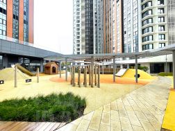 В ЖК продуманная, богатая инфраструктура из трех зон. В основной входной группе сконцентрированы все блага современного мегаполиса: супермаркет, ресторан, фитнес-клуб, аптеки, салоны красоты и кофейня. Под детские игры отведен нижний уровень.