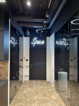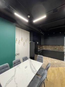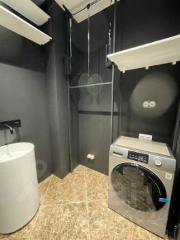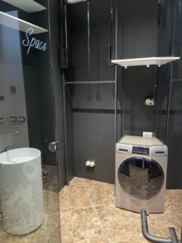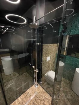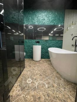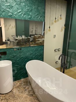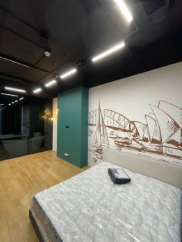 В студии люкс-класса с дизайнерским ремонтом находятся спальня, кухня-столовая, ванная комната с ванной и душевой и зоны хранения. Ремонт выполнен современными и дорогими материалами, установлена качественная техника и сантехника ведущих производителей, система пожаротушения, вентиляции и кондиционирования, встраиваемые отопительные конвекторы, видеодомофон, теплый пол, система защиты от протечек, дистанционно-управляемые шторы и другие фишки.