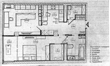 Кухня обособлена, но сообщается с гостиной, из спальни прямой выход в гардеробную и санузел.