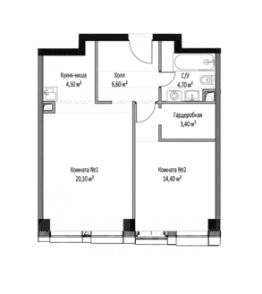 Функциональная планировка: кухня-гостиная, изолированная спальня с гардеробной, совмещенный санузел и коридор с местом под хранение.
