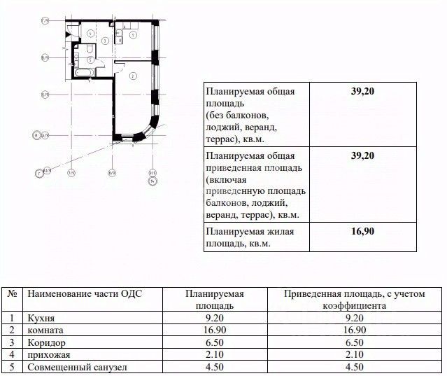 Удобная планировка: комната — 16,9 м², кухня — 9,2 м², коридор — 6,5 м², прихожая — 2,1 м², совмещённый санузел — 4,5 м².