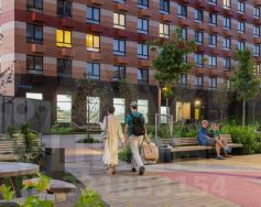 На первых этажах откроются магазины и кафе, а прямо под окнами появятся места для отдыха.