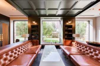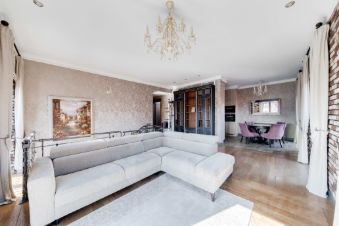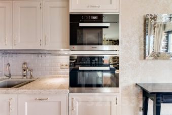 В квартире два уровня по 76 кв.м. Столовая, гостиная, кабинет, две мастер-спальни.
