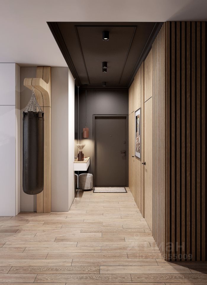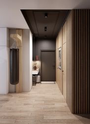 Для хранения верхней одежды и мелких бытовых вещей в квартире есть еще одна гардеробная у входа. Второй санузел предусматривает душевую и постирочную зону.