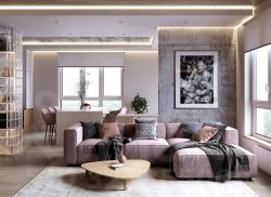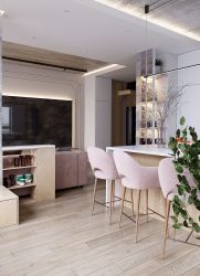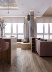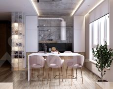 Сердце квартиры - кухня гостиная, которая с легкостью разместит и семью и гостей. ТВ зона, кухонный остров, подиум у окна - каждый найдёт свое место, где он сможет с комфортом провести свой досуг.