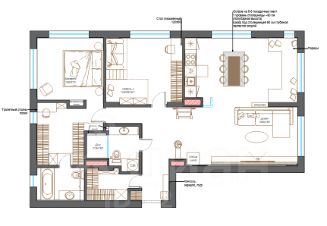 Так же в квартире предусмотрено множество вариантов освещения. Вы можете включить яркий свет или создать теплый, ламповый уют с помощью многочисленных зон подсветки или организовать свою световую композицию с помощью встроенных трековых систем освещения.