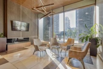 В лобби предусмотрены высокие потолки 5 метров от пола. Вкупе с витражными окнами при входе, которые впускают много естественного света в помещение, пространство холла предельно открытое и уютное. Отделка в приятном современном "эко-стиле", гостиная с мягкой мебелью, ресепшен с эргономичной стойкой входные группы ЖК "Freedom" созданы с заботой о комфорте своих жильцов.