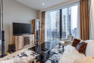 Красивый вид с 30-го этажа на ММДЦ "Москва-Сити". Панорамное остекление, современный дизайн, полная комплектация мебелью.